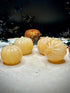 Celebrate the spirit of fall with these charming orange calcite pumpkin carvings! Each one measures about 1 inch by 1 inch, perfect for adding a playful touch to your seasonal decor.