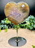Stunning druzy agate with amethyst inclusions. Stands included with order (and in height measurement). Details on each piece listed below: