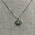 Small opal pendant set in sterling silver. The center opal is framed in silver to resemble a delicate eye charm, full of subtle flash and color play.